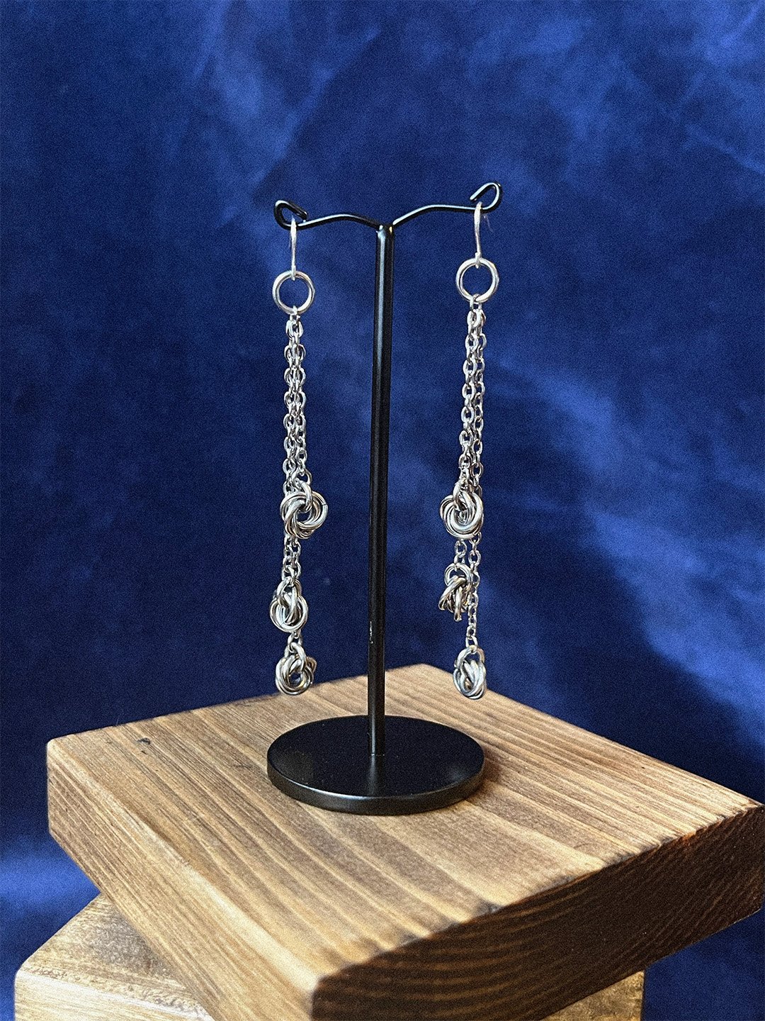 Sterling silver earring wires support a delicate spray of lightweight chains, finishing in a posy of steel flowerheads. These earrings are a daintier option and are sure to elevate any outfit.